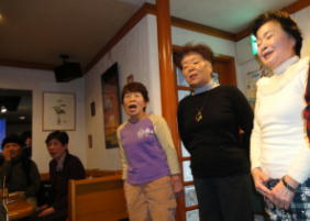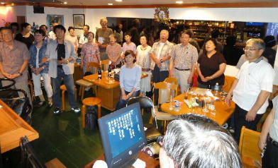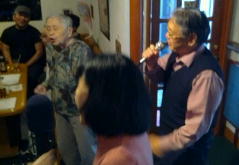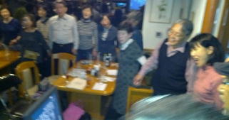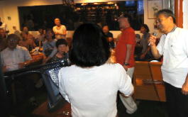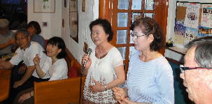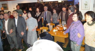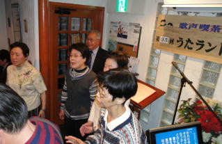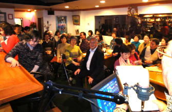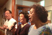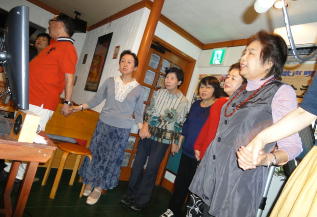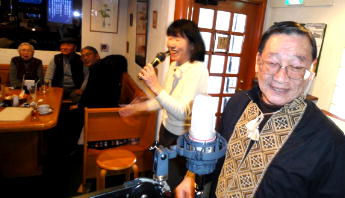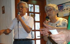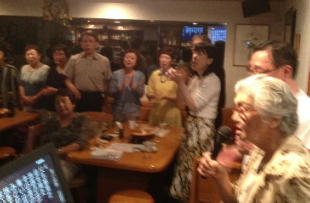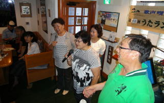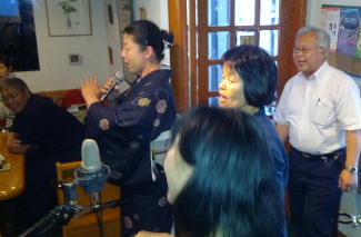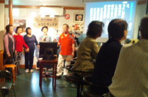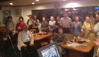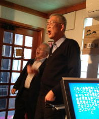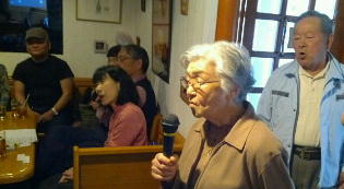 | ←昭和一桁生まれとおっしゃるSさんも前に出て歌われました。お元気です。 |