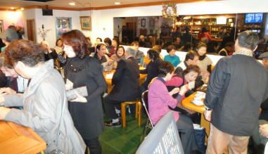 ←快晴、始まるまでの間、受付をする人、おしゃべりをしている人など