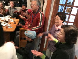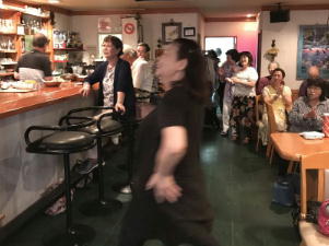 お店でお昼のランチの3名のお客様をママさんがお誘いして、